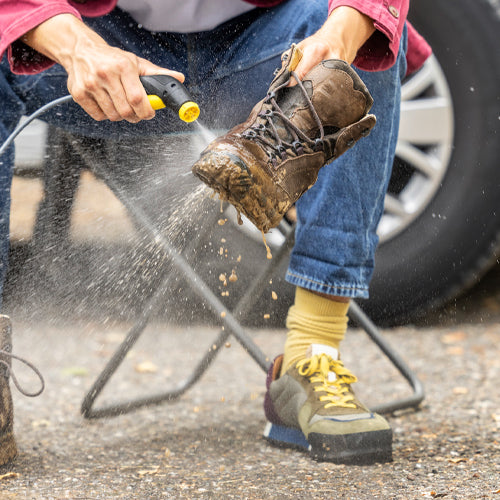 柔らかくして汚れを落としやすくするお湯も使用でき、ビーチや緊急時の簡易シャワーとしても便利です。