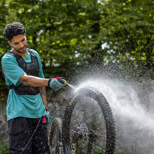 ●水を入れてスイッチを押してトリガーガンを握るだけで洗浄開始