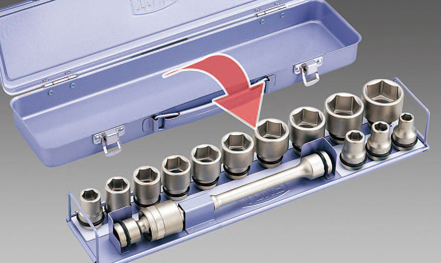 ●ピン・Oリングのついたインパクト用ソケットをそのまま収納可能。