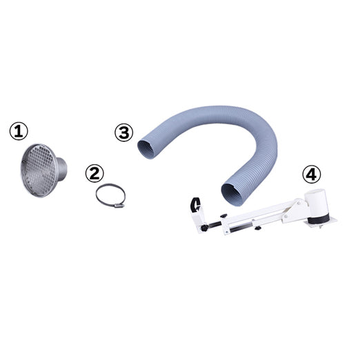 ●付属品…ダクト、ダクトパイプ、ダクトアーム、吸込口、ダクトバンド×2、面ファスナー、M6ネジ×4、φ6スプリングワッシャー×4