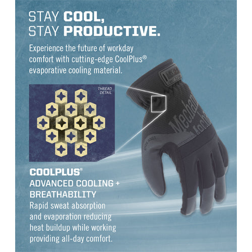 ●CoolPlusRの織りメッシュ手の甲部分は、作業中の熱の蓄積を減らします。