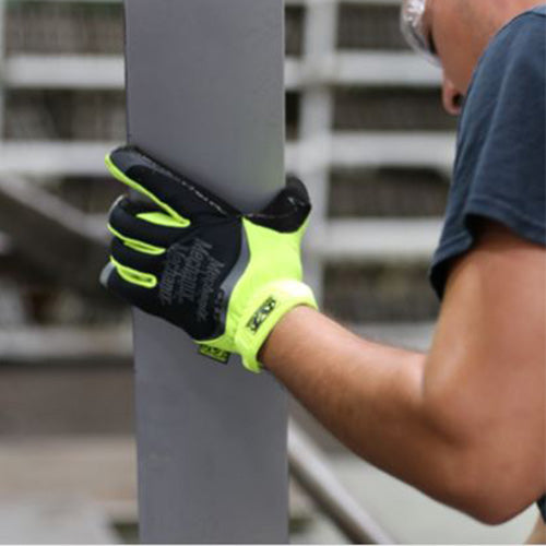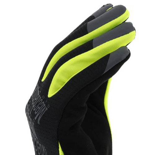 手首部分と指部分のマチには暗い箇所でも視認性の高い蛍光色を使用したデザインのHi-Vizグローブ素材を採用しているので安全性も確保。