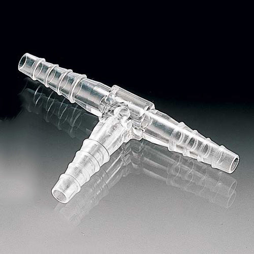 ●透明度が高く中の流体の確認が容易なT字のチューブコネクター。