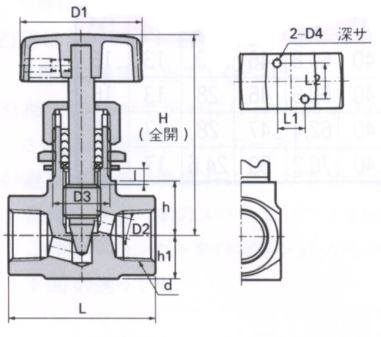 ●サイズ(mm)…d:Rc1/2、H:87、D1:70、L:60、I:6、D2:8、D3:22、h:22、h1:17.5、L1:15、L2:22、D4:M5