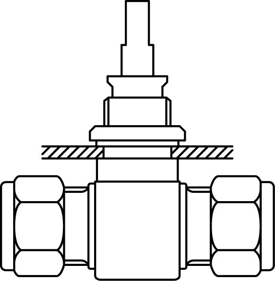 ●材質…ボディ:SUS316、ステム:SUS630、グランド:SUS316、グランドパッキン:PTFE+PFA、パネルガスケット:非石綿シート、セットスクリュー:SUS304、フロントフェルール:SUS316、バックフェルール:SUS316、ハンドル:ZDC