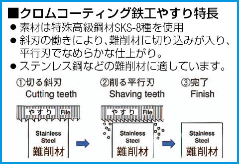 ●ナバエ(やすり目の角度)を鈍角に設定したVRカットを採用することにより、今までにないバリ取り感を味わえます。