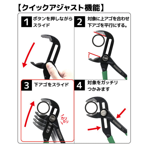 ●ネジ外し機能を搭載した、クイックアジャスト機能付きウォーターポンププライヤー