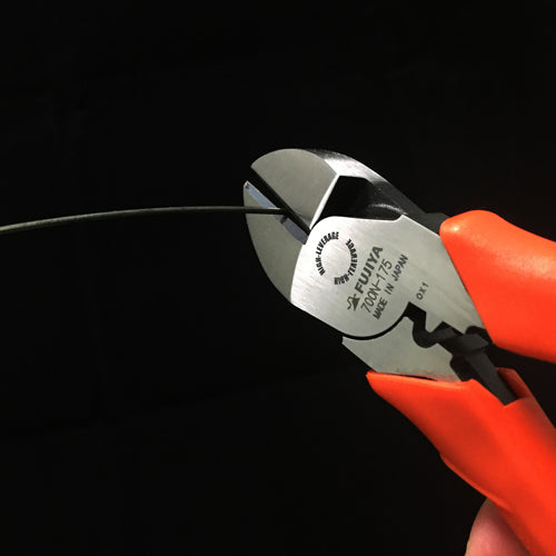 ●刃部から支点までの距離を短くした偏芯機構を採用し、テコの原理でピアノ線やVVF線(VA線)を楽に切断可能です。