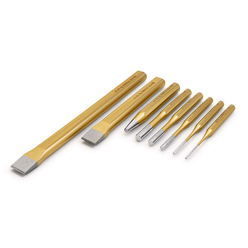 ●フラットチゼル(2サイズ)、センターポンチ(1サイズ)、平行ピンポンチ(5サイズ)の打撃ツールセット