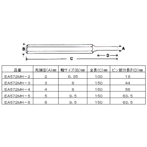 ESCO(エスコ) 3.0x150mm ピンポンチ EA572MH-3