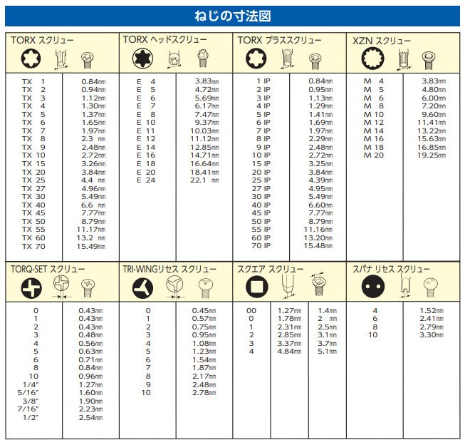 ●サイズ…T8・T9・T10・T15・T20・T25・T27・T30・T40