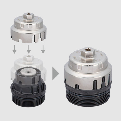 ●トヨタ車に採用されているアルミ製・樹脂製のろ紙交換タイプのオイルフィルタキャップの取付け・取外し専用工具