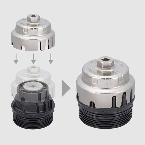 ●トヨタ車に採用されているアルミ製・樹脂製のろ紙交換タイプのオイルフィルタキャップの取付け・取外し専用工具。