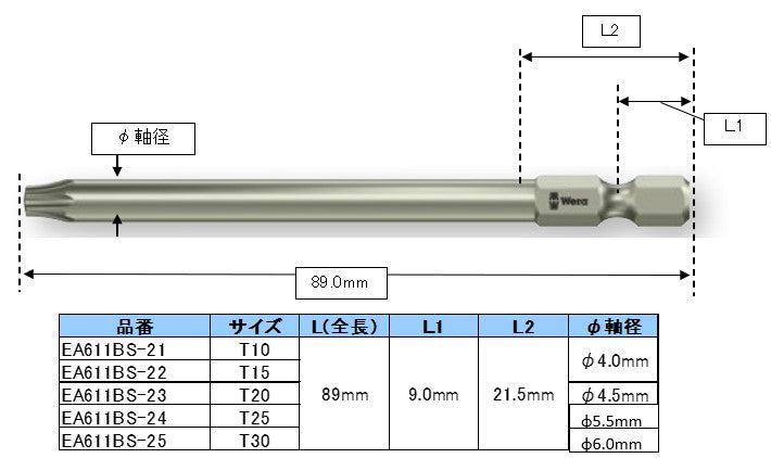 Wera(ヴェラ) T10x89mm [Bore Torx]ドライバービット(ステンレス製) 071089