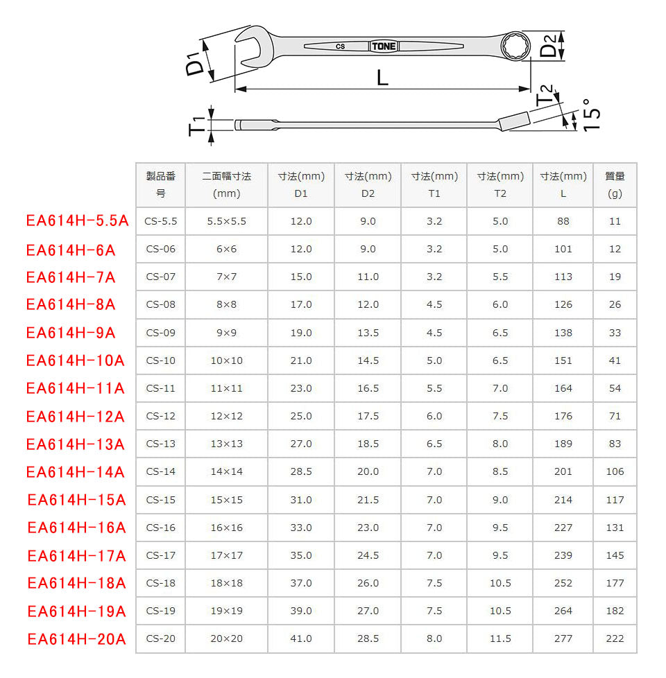 TONE(トネ) 13mm 片目片口スパナ CS-13
