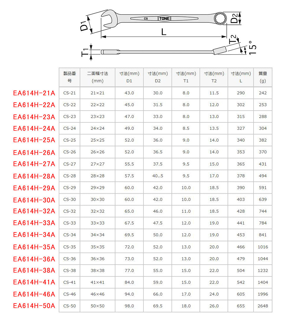 TONE(トネ) 24mm 片目片口スパナ CS-24