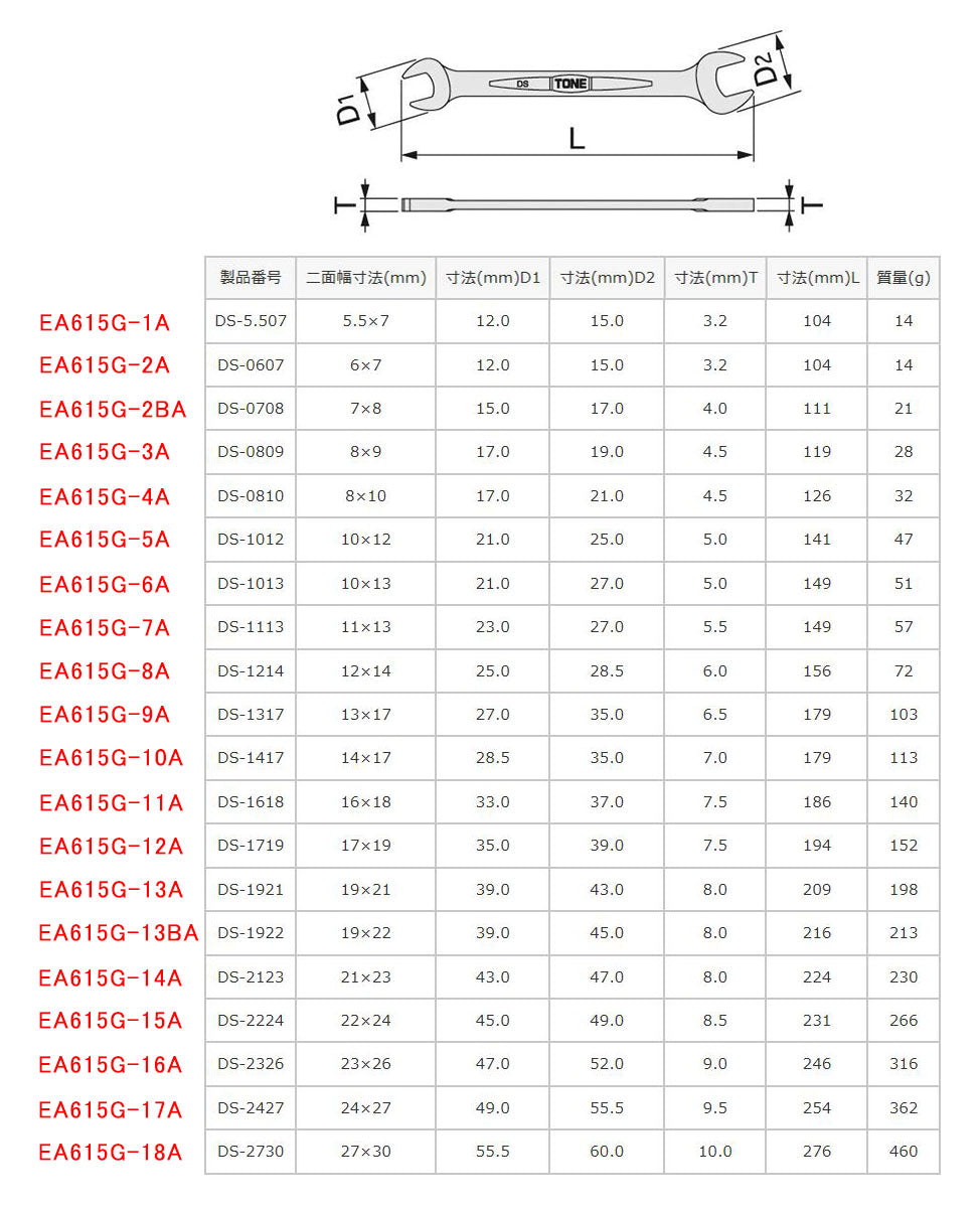 TONE(トネ) 12x14mm 両口スパナ DS-1214
