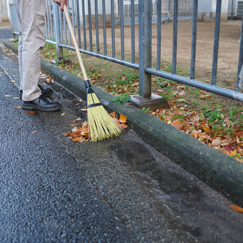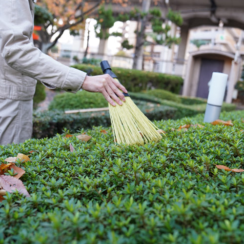 ●「く」の字に曲がった穂先で生垣の下などの狭い場所や隅に溜まった落ち葉を掻き出しやすいです。