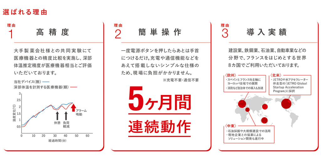 ●身体の熱の産出と放出を検出する独自の技術「熱ごもりセンサー」を搭載しています。※特許取得済み技術