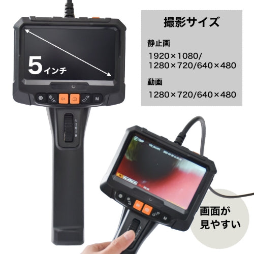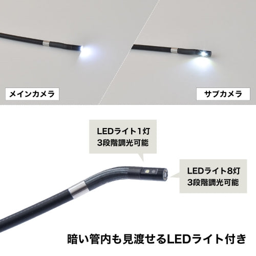 ●手元の操作で約210度湾曲するメインカメラと、側面を見ることができるサイドカメラと2つのカメラを搭載した工業用内視鏡です。