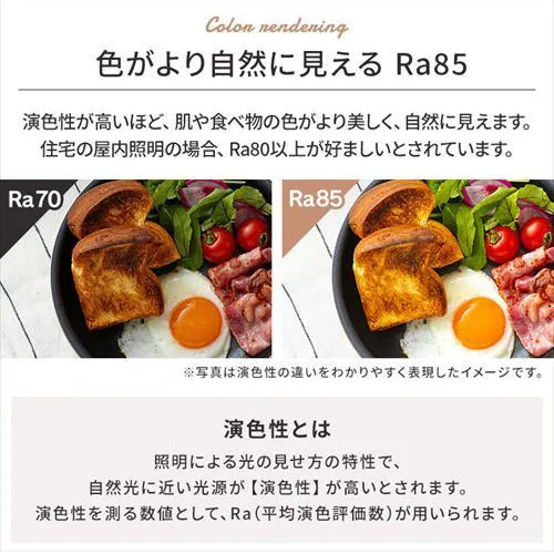 ●色がより自然に見える演色性Ra85