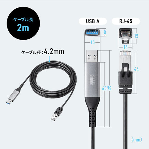 ●USB AポートをLANポート(RJ-45)に変換し、有線ネットワークに直接接続が可能。