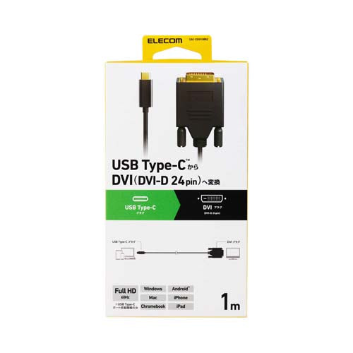 ●パソコンやスマートフォンなどの映像をディスプレイなどに出力できる、USB Type-C(TM)ポートをDVI(DVI-D 24pin)プラグに変換するケーブル