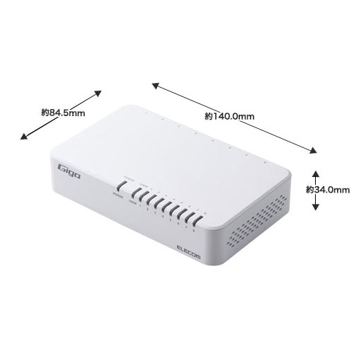 ●Giga(1000BASE-T)対応、ACアダプター電源のプラスチック筐体8ポートスイッチングハブです。