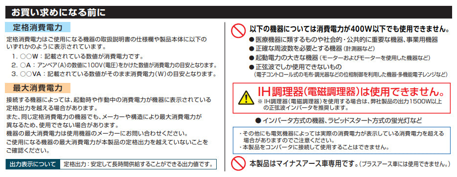 ●定格出力…400W(USB出力含む)