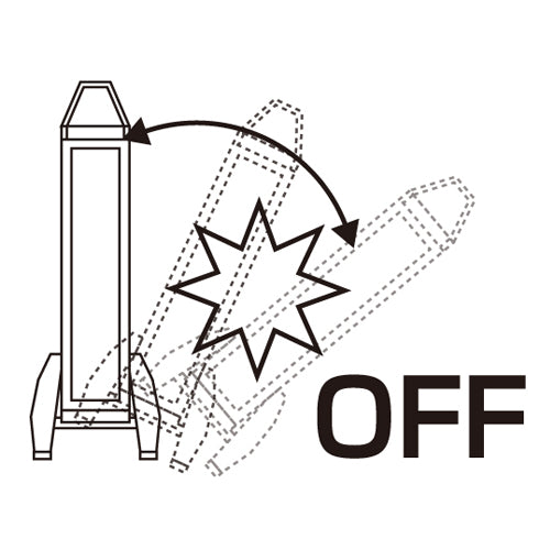 ●万が一の転倒時には、運転が停止する 安全装置を内蔵しています。 また、サーマルスイッチにより異常加 熱時も運転が停止します。
