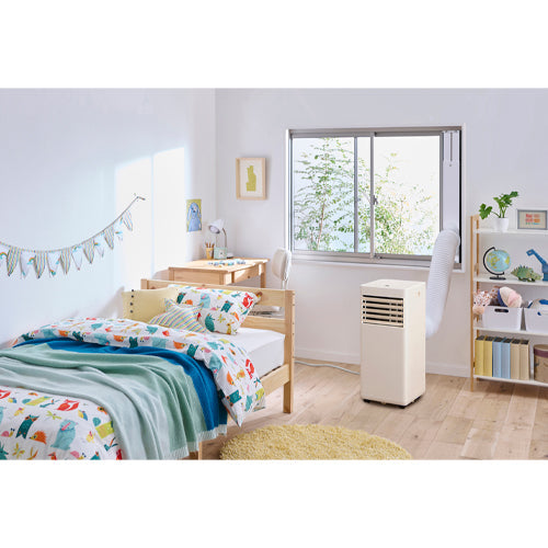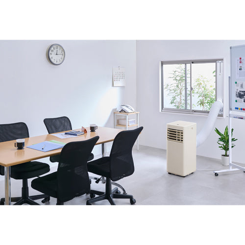 ●取付工事が不要で、エアコン配管穴が無く設置が難しい場所(キッチンやガレージなど)に、誰でも簡単に設置できる移動式です。