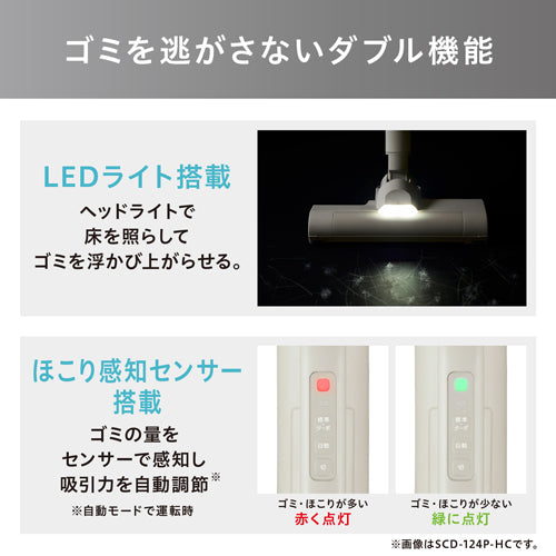 照らし浮かび上がらせるLEDライトと、色の変化でゴミを見える化する高性能ほこり感知センサーでゴミの見逃しを防ぎます。