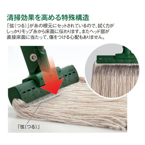 ●「弦(つる)」が糸の根元にセットされているので、拭く力がしっかりモップ糸から床面に伝わります。