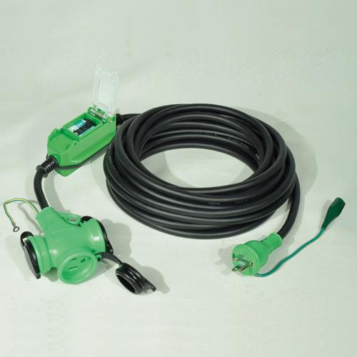 ●お手持ちの防雨型の工具や延長コードにつなぐだけで、野外でも安心使用。