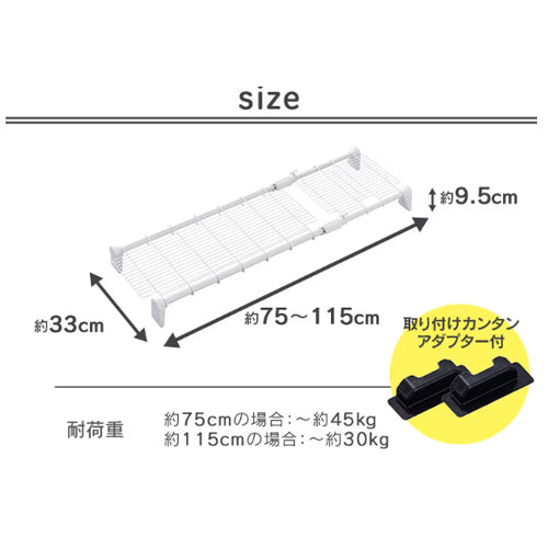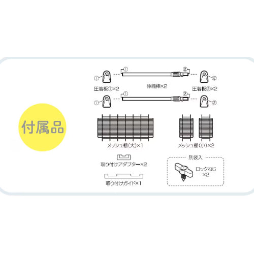 ●小物が落ちにくいメッシュ棚が2枚付いているのでポールを伸ばした際に棚部分を追加できます。