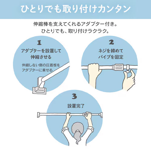 ●ねじや釘を使わずに壁にしっかりと固定できる伸縮棒です。