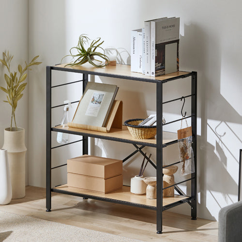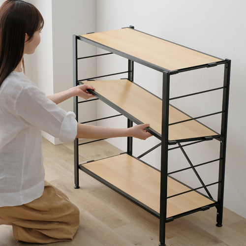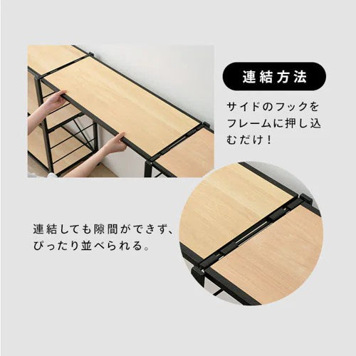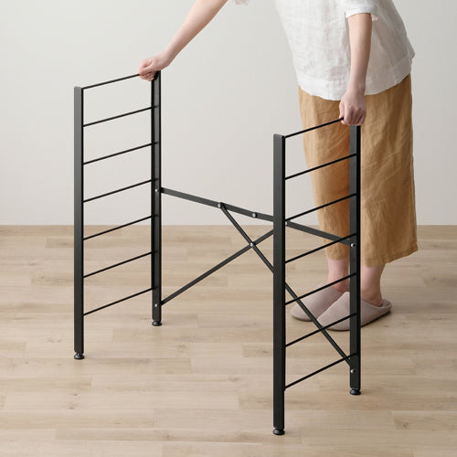 ●簡単に組み立てができるスチールラックです。組み立てはフレームを開いて棚板を取り付けるだけの2STEPです。
