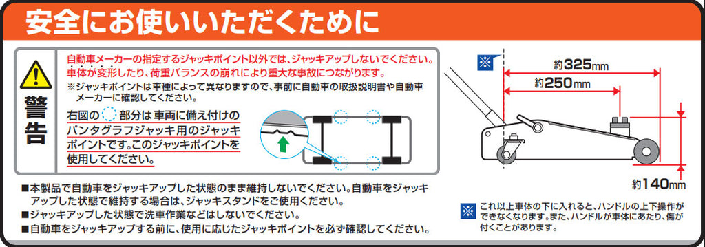 ●さまざまなパンタグラフジャッキ用のジャッキアップポイントに対応したサイド上げ専用サドル付き。