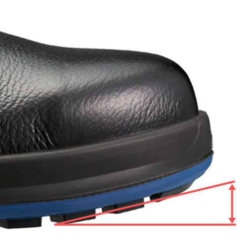 ●つま先部分を上げた形状(トゥスプリング)でつまずき防止