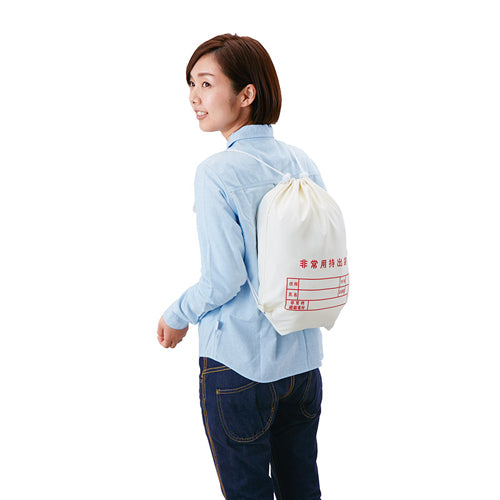 ●避難場所、住所、氏名を記入できる非常用持出袋です。